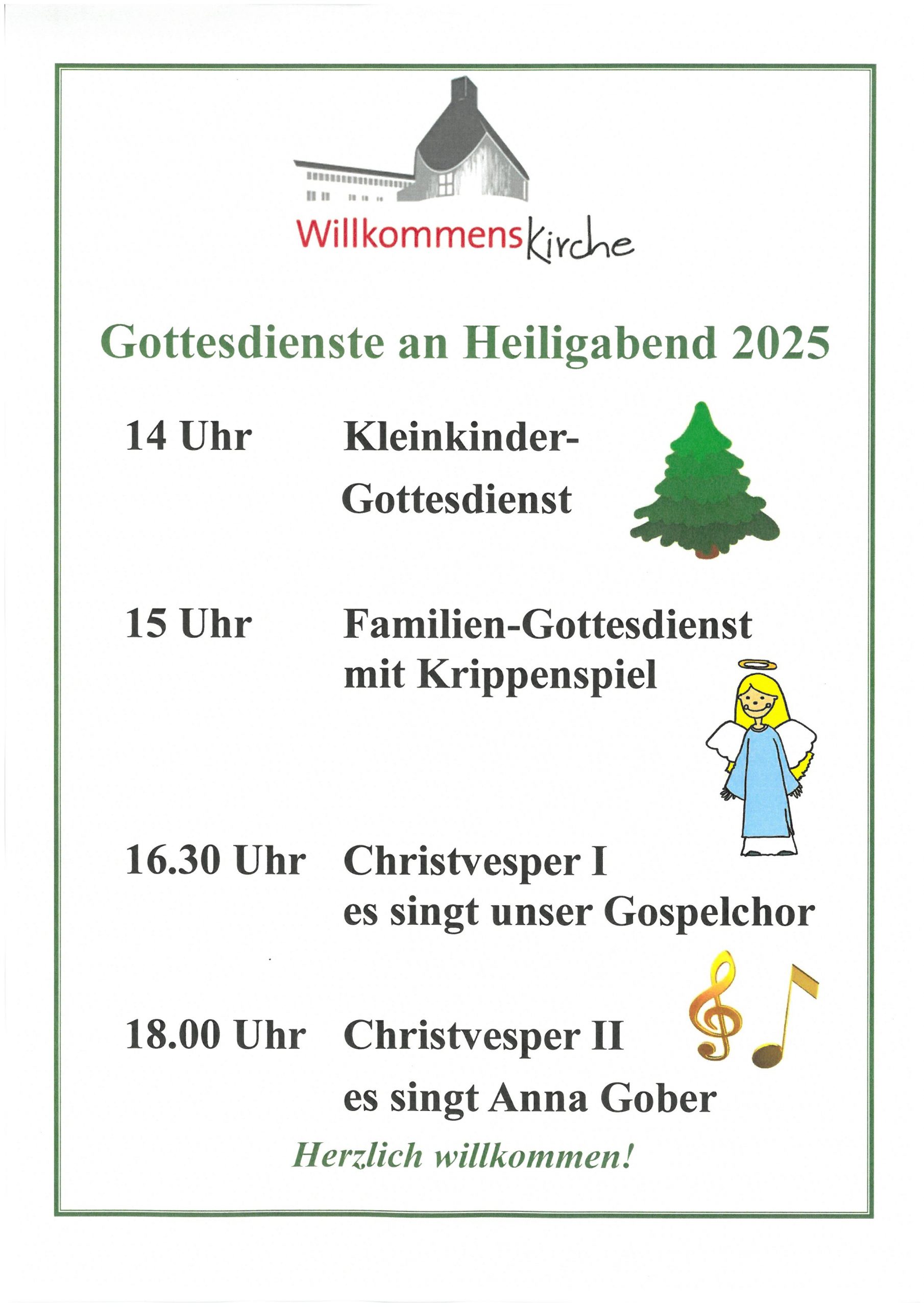Gottesdienste an Heiligabend in der Willkommenskirche